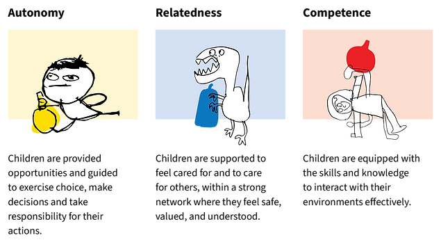 Guided by a motivation theory framework, we focus on nurturing three essential aspects of a child’s development: autonomy, relatedness, competencies. This framework helps us to prioritise scaffolding of child's motivation in learning to best support those who struggle with poor self image and social skills.
